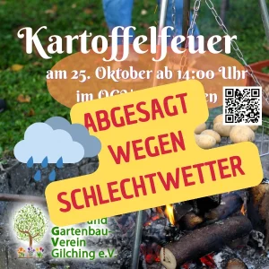 Leider müssen wir wegen des voraussichtlich widrigen Wetters unser Kartoffelfeuer absagen. Ein Ersatztermin ist nicht geplant.
